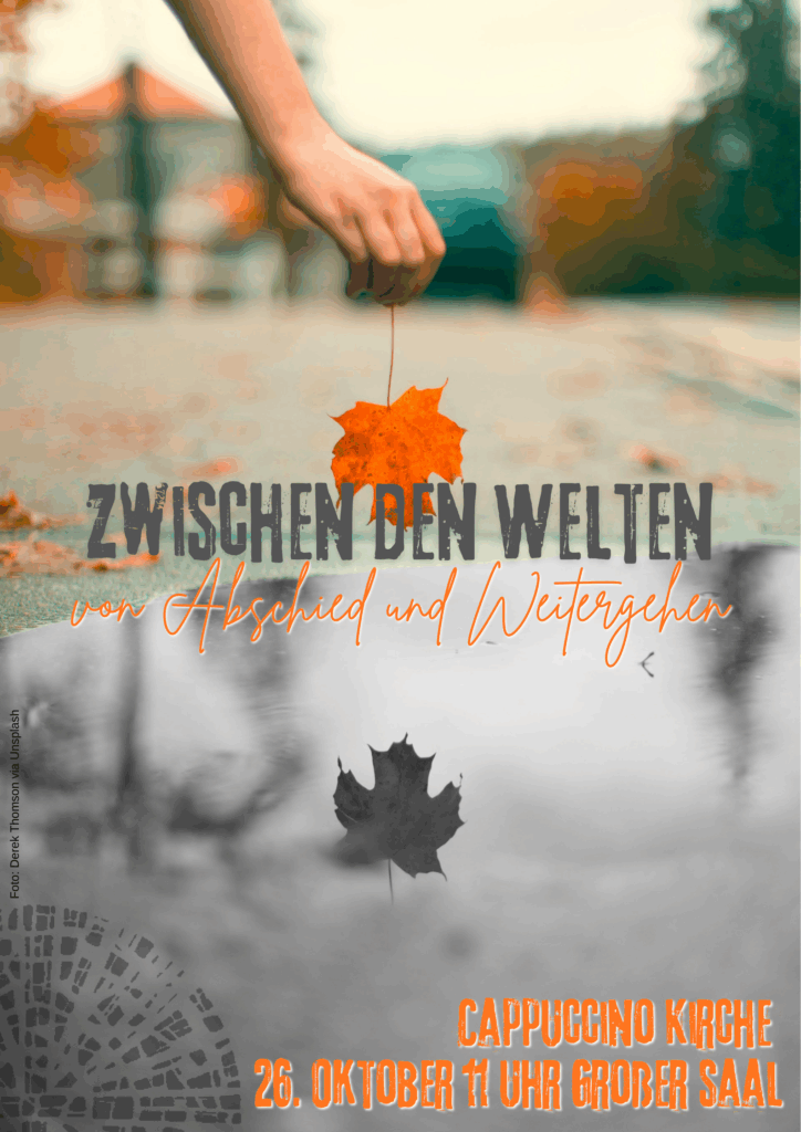 Am 26. Oktober um 11 Uhr feiern wir die nächste Cappuccino Kirche im Großen Gemeindesaal. Zur herbstlichen Jahreszeit passend geht es um Abschied und was das mit uns macht. „Zwischen den Welten – von Abschied und weitergehen“ Wir freuen uns auf Euch!